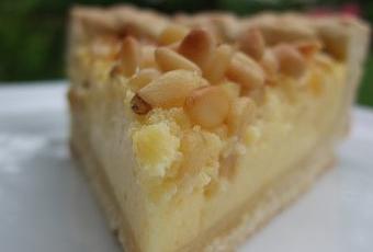 Le lendemain, vous n'aurez plus qu'à foncer un moule beurré, y déposer la crème refroidie, saupoudrer de pignons et enfourner.