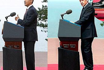 Le quotidien britannique « Daily Mail » a rapporté le 6 juin que France Télévisions vient de publier un vidéo montrant Nicolas Sarkozy qui prononce son discours lors de la cérémonie de commémoration tenue à l'occasion du 65ème anniversaire du débarquement allié en Normandie et une image publiée ridiculise l'orateur debout derrière un pupitre, mais sur... un tabouret en bois. La vérité c'est que le Président français qui pensait à tout a recommandé tout particulièrement à un de ses assistants à l'Elysée de poser un tabouret derrière le pupitre avant qu'il monte sur la tribune pour prononcer son discours, ce qui lui permettra alors de sembler plus haut et plus grand de taille et plus svelte dans les images télévisées qui seront diffusées par la suite. Car il n'oublie pas que le Président américain Barack Obama et le Premier Ministre britannique Gordon Brown, qui prononceront également chacun de son côté un discours, mesure l'un et l'autre une taille respective de 1,85 mètres et de 1,80 mètres, ce qui sera quelque chose de défavorable pour lui.