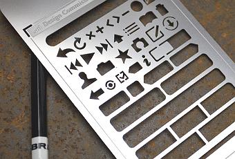 Vous qui avez en tête la création d’une interface pour l’iphone, voici un Iphone Stencil Kit car rien de vaut le papier et le crayon pour laisser crayonner ses idées, les gommer et recommencer. Excellente idée, justement. L’iconographie générique joue un un rôle clef dans ces interfaces qui se doivent d’être intuitives, les automatismes visuels créent le confort d’utilisation. J’en ai commandé un, ça me plait bien, ne serait-ce que pour l’objet lui même. 16,95 USD, par là