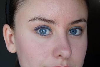 "Alors, j'ai fais plusieurs essais de maquillage mais mon préféré reste toujours le bleu, bien que j'ai les yeux bleus. Le seul problème, c'est que je n'ai pas de fond de teint ici (je mets rarement quelque chose sur le visage à part le fard à joue), juste de la poudre-fond de teint achetée chez Sephora.. je n'ai donc maquillé que