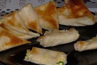Samossas jambon, fromage de chèvre et œufs