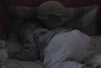 Conséquence de quoi : plus moyen de le faire dormir sur le dos. Et je dirais même plus, ces derniers jours, ZE position dans le lit, c'est ça :