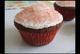Laissez-les refroidir totalement et lorsqu'ils sont froids, recouvrez la surface avec le glaçage (au préalable mélangé avec le sirop). Saupoudrez la surface de vos cupackes avec un peu de poudre de biscuit rose.