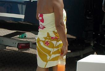Je ne suis pas intéressée mais je cherche à faire quelques clichés comme les photographes du dimanche que je croise. Au milieu de toute cette puissance de moteurs, cette arrogance d’argent, cet étalage du m’as-tu vu, il y a deux va’a en bois (pirogues traditionnelles) avec proue et poupe sculptées, superbes. Mais Dieu qu’il faut être mince pour se glisser sur leur banc spartiate ! Bonne chance.