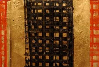 Peinture acrylique, aérosol or, huile sur papier kraft industriel.H: 59,5 x L: 42,2 cm réf 097BK040