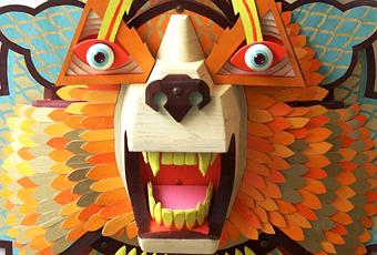 AJ Fosik expose depuis ce week end à la galerie White Walls de San Francisco. L’artiste américain y présente ses nouvelles sculptures animalières, complexes et colorées, créées à partir de copeaux de bois taillés et peints à la main, inspirées des trophées de chasse, de la taxidermie et de l’imagerie populaire américaine. Jusqu’au 10 juillet 2009.