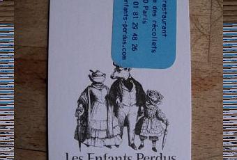 Les enfants perdus… que nous sommes avons enfin trouvé une bonne adresse parisienne tant pour boire un verre que pour diner, en été comme en hiver (la salle intérieure aux pierres apparentes et avec son puis de lumière est fort agréable). Les Enfants Perdus, en dehors d'un accueil sympathique et naturel unique en son genre dans cette infâme capitale où la consommation est de rigueur avant le bon savoir-vivre, propose une carte originale aux yeux et au goût. Au menu, le carpaccio de bar de ligne mariné au lait de coco, mangue et gingembre, les supions farcis à la ratatouille et au chèvre frais poêlé pour les entrées ; la cassolette de calamars à la citronnelle Thaï, accompagné d'un risotto à l’encre de sèche et d'une tuile de parmesan est indéniablement mon plat préféré jusqu'à présent. Les fromages fournis par une crèmerie du 10e sont excellents, le saucisson très fin. Les vins tels que le Muscat sec du Mas Rouge ou le Graves confirment le cachet du lieu. Tous les produits ont une provenance bien précise - Auvergne, Touquet, Aubrac, … - et choisis avec soin, et la qualité des plats s'en ressent. Une adresse incontournable du quartier du Canal Saint-Martin, rue des Récollets.