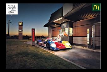 Dès lundi, le proto multicolore “esprit Mondrian” de l’écurie française s’affichait dans une pub pour McDo. Petit clin d’œil marrant pour soutenir le slogan “venez comme vous êtez”.