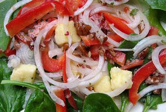 Une salade pour changer ! C'est le titre du livre de chez "marabout" d'où provient cette recette extra bonne. En plus, les épinards, c'est ma p'tite folie donc, ce soir, je me suis fait plaisir !