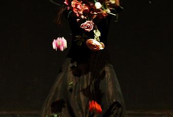 Ce titre pouvait annoncer du butô et sa tonalité sombre ; mais il faut prendre "dispersé" en bonne part : dispersés comme ces fleurs jetées peu à peu sur le plateau, haïkus répandus comme des bulles de vent. Wen-hsuan Chen revêt une longue robe noire pinabauschienne, Marie-Jo Faggianelli une robe bleue vaporeuse. Les corsages à demi-défaits, dont elles relèvent continument la bretelle, les gestes attentifs que l'une et l'autre se portent suggèrent une histoire sensuelle dont on ne saura rien de plus.