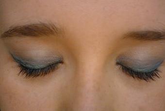 "Après avoir mis ma base (correcteur, fond de teint, poudre), j'ai étalé une poudre de "luminelle" sur toute ma paupière, de la racine des cils à l'arcade sourcilière. Ça dégage le regard. Puis, j'ai pris 3 crayons de la marque Bourgeois: un turquoise, un violet, un bleu électrique et un noir. J'ai mis le violet dans la coin interne de l'oeil et le turquoise dans le coin externe.J'ai un peu estompé, mélangé au milieu pour qu'il n'y ait pas de séparation trop disgracieuse. Ensuite, j'ai tiré un trait bleu électrique à la place de l'eye-liner. C'est plus léger et plus joli pour l'été aussi. Afin que le regard ne soit pas déséquilibré, j'ai mis un trait de crayon noir sous le yeux, que j'ai estompé par la suite pour ne pas faire trop sorcière. Pour finaliser le tout, j'ai mis une bonne couche de mascara, "volume express lift-up" de Maybelline.