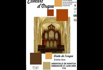 Le dimanche 21 juin 2009 à 17h en l’abbatiale Saint Michel de Nantua (Ain) aura lieu un concert d’orgue dont l’entrée sera libre à l’occasion de la Fête de la Musique 2009. L’association « Les Amis de l’Orgue de Nantua » organise ce concert en collaboration avec le Conservatoire à Rayonnement Départemental d’Oyonnax.