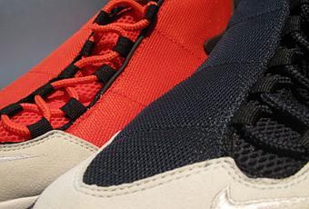 Après les versions Electrolime/Neutral Grey-Black et Black/Neutral Grey-Neo Turquoise (voir ici), on découvre aujourd’hui deux nouvelles versions de l’Air Footscape réalisée par Hiroshi Fujiwara: Chili Red et Dark Obsidian. Elles viennent de sortir dans la boutique Nike Sportswear de Mercer Street à New York.