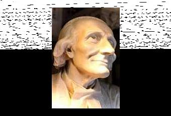 Jean-Marie Vianney est né en 1786 à Dardilly, près de Lyon. Il raconte de lui que, tout petit, il aimait la solitude, et ressentait particulièrement la crainte révérencielle de Dieu. Les années de la fin du 18° siècle sont des années difficiles. La Révolution Française ne permet à personne de prier Dieu en public. Et ainsi, les parents de Jean-Marie, l'emmènent à la Messe célébrée dans un grenier en dehors du village. Les prêtres pris à célébrer la Messe étaient condamnés à la guillotine. Malgré le climat anticlérical, même s'il y avait des menaces très fortes contre les prêtres, Jean-Marie développe dans son cœur sa propre volonté de se consacrer entièrement à Dieu dans le Sacerdoce. Il veut devenir prêtre. A dix-sept ans, il parvient pour la première fois à fréquenter l'école ; avec l'aide d'un prêtre ami qui croit en sa vocation, il s'efforce de suivre les études, avec des résultats assez médiocres. Les difficultés deviennent insurmontables quand il s'agit d'aborder, au séminaire, les études de philosophie et de théologie. Mais Jean-Marie ne se rend pas ; il accepte toutes les humiliations ; et, finalement, il est ordonné prêtre en 1815 à Grenoble, à l'âge de 29 ans.