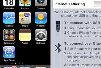 Avec l’iPhone Os 3.0, est apparu la possibilité logicielle de partager la connexion internet de son téléphone pour surfer sur son ordinateur, c’est ce qu’on appelle le “Tethering”. Avantage : une connexion même pour les nomades sans pour autant raquer la mort avec une clef 3G.