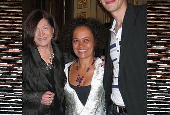 Dans la photo de gauche la créatrice, au milieu avec l’ambassadrice et Garcian Jaquet.