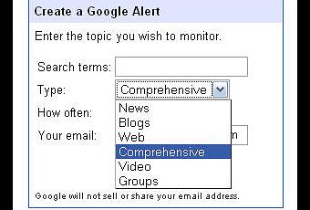 Or, Google Alerts permet maintenant la recherche de clips vidéo qui apparaissent sur Google Videos. L’utilisation de ce service est simple : une fois sur le formulaire, vous entrez les termes recherchés, sélectionnez le type de recherche, sa fréquence et enfin vous donnez à Google Alerts votre adresse courriel. Google Alerts est aussi disponible en français, mais malheureusement la recherche vidéo par mot clé ainsi que celle des blogues est absente. Donc, je vous suggère plutôt d’utiliser la version originale anglophone.
