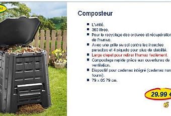 J'ai acheté, pas cher, un "composteur" dans une grande surface. Quelques semaines plus tard, j'ai l'ai vu dans une publicité, mais avec une description qui m'a laissé perplexe...