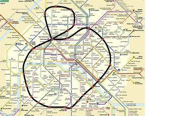 Je vous propose ma ligne de métro.Je la présente très sommairement : - elle relie 4/5 gares, - elle coupe les 4 lignes RER par 2 endroits chacune,- elle forme un huit et plus encore n'a ni fin ni début,- elle a des stations relativement espacées.Je vous invite à construire vos parcours pour voir si elle raccourcit votre route. J'avais comme intuitions en démarrant le dessin : relier l'Est au Sud, les gares entre elles et alléger la 13 et créer une route nouvelle.