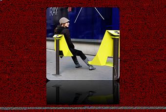 Plateau de tables pour boire le café du matin près des douces vapeurs d’essence de gazole, ou assises tournantes pour discuter avec ses voisins de poteaux en tournant le dos aux voitures; 2 types de mobiliers bien distincts mais complémentaires qui agrémentent la vie urbaine. Jaunes poussin, ils se repèrent de loin et créent une nouvelle frontière visuelle aux véhicules. Adaptatifs, ils se clipsent sur la plupart des équipement urbains.