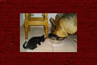 Heureusement que les chiens sont super avec lui ! Le vieux labrador ne risque pas de lui faire grand mal il ne le voit plus et le temps qu’il réagisse il n’est plus là ! Quant au jeune Berger allemand, il est heureux comme tout : il s’est trouvé un petit copain…mais vraiment très petit, le chat a mis une bonne semaine avant de comprendre qu’il ne risquait pas sa vie. On peut le comprendre. Mais étonnamment, je crois bien qu’il n’a pas compris que le danger venait d’ailleurs, de son propre congénère. Ce n’est pas faute de lui avoir montré tous les signes d’agressivité possibles et imaginables à chaque fois qu’il en a l’occasion. A ce sujet les phéromones vendues par les vétérinaires…heu…c’est à améliorer !!!!