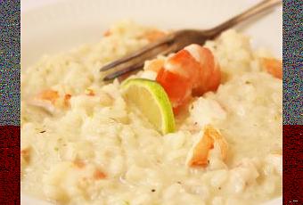 Risotto aux crevettes, citron vert et lait de coco (pour deux personnes)