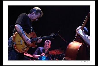 La section rythmique, contrebasse et batterie, d’excellente facture soutient et magnifie le jeu de Ron Hacker. Très apprécié furent les pastilles sonores rythmiques ponctuant les changements de guitare et breaks. Nous avons apprécié particulièrement le jeu et le charisme virevoltant du contrebassiste.