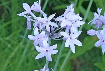 Toujours dans les tons des bleus, les massifs de tulbaghias ornent l'accès au bassin du bas...