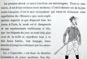 dans ce blog). Albert Millaud (1844-1892) écrit un chapitre sur 'Le copurchic' dans ses Physiologies parisiennes (1886) : "Le "Copurchic" est donc la dernière incarnation du jeune