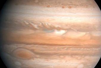 L'atmosphère de Jupiter peut également former d'immenses tempêtes. Elles se apparaissent sous la forme de vastes taches, généralement blanchâtres, parfois brunes, appelées des ovales, et qui peuvent persister des mois ou des années. Elles correspondent à des remontées de matière depuis les profondeurs de l'atmosphère jovienne. Parfois ces tempêtes se rattrapent, et fusionnent. C'est ce qui est arrivé, par exemple, en 1998, à deux ovales clairs dont l'évolution était suivie depuis un demi-siècle.
