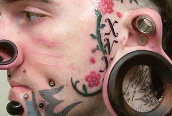 ça plus les scarifications sur les pommettes!! il doit pas s'aimer le garçon ...