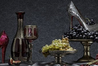 Une série de tableaux de nature morte avec des fruits, des fleurs qui font correspondance avec les célèbres chaussures à semelles rouges, c’est de la poésie baroque à mes pieds.