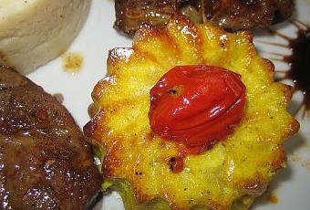 Très agréable recette trouvée sur le blog de Doria mais adaptée à ma façon, tout en légèreté et en accompagenemt de purée de pommes de terre, de côtes d'agneau aux tomates cerises caramélisées!! Nous nous sommes régalés!! Pour votre marché et pour 2 personnes -1 courgette et une demi-125 gr de Ricotta -30 gr de parmesan râpé-1 oeuf-un peu de sel de Guérande-1 càc de curcuma(j'adore)-Poivre et un peu de sel Je mets mon tablier: *Eplucher les courgettes , couper en rondelles, et faire revenir dans de l'huile d'olive avec le sel, le poivre et le curcuma.*J'y ai ajouté 1/2 cube de bouillon, hmmmm*Cuire à feu doux pendant 8 minutes.*Dans un saladier, battre les oeufs , le parmesan et la Ricotta.*Préchauffer le four à 160°C*Disposer les rondelles de courgettes au fond de petits moules en silicone et verser la préparation aux oeufs.*Enfourner pour 20 minutes.*Servir avec une salade!!!! Bon appétit!