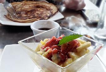 On se laisse cependant tenter par la formule brunch qui est à la hauteur des 18€ tout compris. Et pour ce prix là, on a le parcours classique du brunch copieux : 1 boisson chaude, 1 jus de fruit, un panier de mini-viennoiseries, un plat principal à choisir parmi 3 plats chauds et une salade ainsi qu'un dessert.
