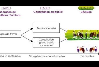 L'étape 2 de ce vaste programme vient tout juste de démarrer, consistant en une large consultation publique sur le web et lors de réunions de terrain autour de 8 grandes thématiques: Changements climatiques et énergie, Biodiversité et ressources naturelles, Instaurer un environnement respectueux de la santé, Production et consommation, Démocratie et gouvernance, Compétitivité et emploi, OGM et Déchets. Si vous souhaitez vous exprimez sur ces sujets, n'hésitez pas à vous rendre sur les forums dédiés avant le 12 octobre.