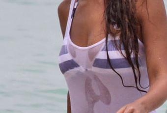 Beyonce avait un peu de temps libre pour une fois. Le temps d’aller à la plage de Miami pour se rafraichir avec quelque plongés sous l’eau toute habillée. Sans maquillage, Elle s’est retrouvée en t-shirt mouillé dans une vraie beauté naturelle.