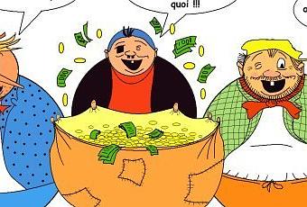 Tags : Les Pieds Nickelés, Filochard, Ribouldinge, Croquignol, Pellos, bande dessinée, bd, rois de l'arnaque, banquiers, fric, billets, argent, l'avis des héros, strip humoristique, dessin humour, parodie, gag, joke, Raymond Maric