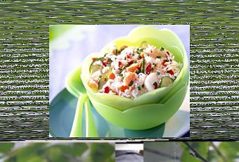 Coupez le poivron en 2, épépinez-le et coupez-le en petits dés. Lavez le concombre et coupez-le en rondelles.