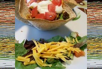 Dans une poêle, dorer l'oignon dans le beurre et le reste de l'huile environ 5 minutes. Ajouter l'ail, le bœuf, le reste de la poudre de chili et de l'origan, le sel d'ail et le sel d'oignon. Poursuivre la cuisson en brassant jusqu'à ce que la viande soit cuite. Poivrer. Tapisser chaque bol de tortilla d'un nid de laitue tranchée. Ajouter la viande, puis parsemer de dés de tomates, de coriandre et de fromage, puis couronner de crème sure. Servir aussitôt.