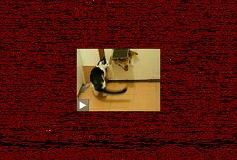 Un chien tente de passer par la chatière, le chat ne l'entend pas de cette oreille