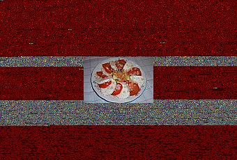 - Sur 1 assiette formez une rosaces de tomates, mozzarella en les faisant se chevauchée un peu; d'abord une tranche de tomate, puis une tranche de mozzarella et ainsi de