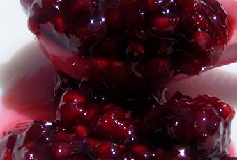 Confiture de framboises, myrtilles, lychees, eau de rose et fleur d'oranger