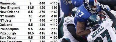 Dallas, 9: on croit toujours les Cowboys plus forts qu’ils ne le sont en réalité…T.O. n’est plus là, ce qui a ses bons et ses mauvais côtés. Difficile à évaluer mais vu que les Eagles et les Giants devraient être très bons, on va dire UNDER.