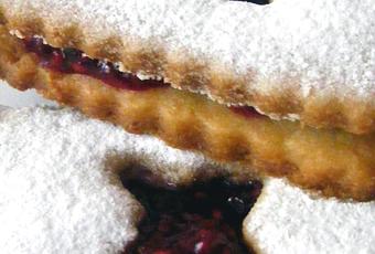 Une fois refroidis, déposez une cuillère à café de confiture de cerises à l'amande amère sur les sablés puis recouvrez avec les sablés restants qui auront été recouverts de sucre glace auparavant.