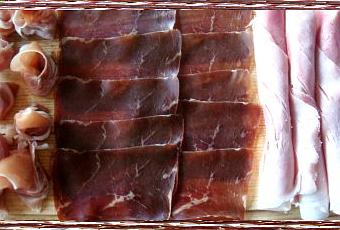 Je ne vais pas vous donner une recette mais quelques photos de la charcuterie que nous avons acheté hier aux Halles à la maison Sibilla, des tranches de jambon, de speck, de viande des grisons, fines comme des feuilles de cigarette, que l'on a dégustées avec des salades et pour tonton Philoche, quelques pommes de terre sautées, il en raffole !