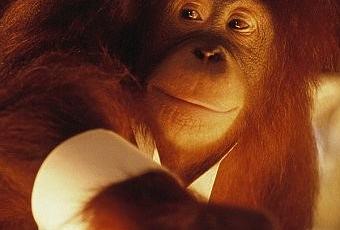 En fait Fuku-chan est un singe qui ne connaît pas la crise. Muni de sa serviette blanche, il accueille tout sourire les clients de ce restaurant japonais.