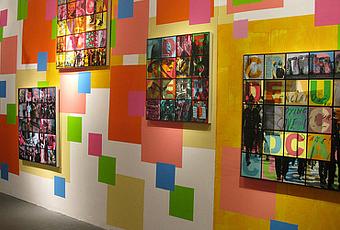 Ben Eine expose depuis hier soir à la Carmichael Gallery de Los Angeles, sur Melrose Avenue: The A-Z of Change. C’est sa première exposition solo à LA. L’artiste britannique semble s’éloigner peu à peu de ses œuvres purement typographiques qui l’ont rendu célèbre et offre ici de nouvelles toiles sur fond de contestation sociale anglaise. Photomontages, lettrage transparent et quadrillages contrastent sur les carrés de couleurs vives qui ont été peints par l’artiste sur les murs de la galerie. Jusqu’au 30 juillet.