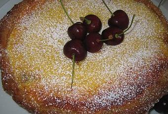 En attente de mon nouveau frigo, il me restait des cerises et ....sur le blog de Mamina,http://www.mamina.fr/article-33143112.html, j'ai trouvé ce gâteau issu du blog http://idolcidilaura.blogspot.com/2009/06/torta-soffice-con-ciliegie-ricotta.html et je me suis lancée!!Il se fait en deux cuissons, vous comprendrez lorsque vous lirez la recette!Un délice et pas trop sucré!!Merci Laura et Mamina!!Pour votre marché:Pour 6 personnes:Le fond:-2 oeufs-120 gr de sucre-55 gr d'huile d'olive-6,5 cl de lait-125 gr de farine-1 sachet de levurePour la garniture:-5OO gr de Ricotta-20 cerises-4 oeufs-45 gr de farine-70 gr de sucreOn fait comment?*Préchauffer le four à 180°C*Au robot, si possible, fouetter les oeufs et le sucre, verser l'huile et le lait en filet en continuant de fouetter avant d'ajouter la farine et la levure jusqu'à obtention d'un appareil assez épais.*Garnir un moule de 24-26 cms de diamètre d'une feuille de papier cuisson et cuire environ 10 minutes.La garniture:*Pendant la cuisson du fond, mélanger tous les ingrédients sauf les cerises.*Après avoir sorti le moule du four, verser une petite moitié de l'appareil dans le moule, poser les cerises dénoyautées et couvrir avec l'appareil restant.*Remettre au four et cuire environ 40 minutes.*Laisser refroidir avant de démouler , saupoudrer éventuellement avec du sucre glace.Ne soyez pas étonnés , au bout de 10 minutes, la pâte du fond n'est pas totalement cuite et lorsque vous versez la garniture , elle remonte un peu le long des parois du moule, formant ce qui sera la croûte et qui donnera un gâteau à deux textures.Le fond étant un biscuit plutôt léger et aéré et la garniture ayant une consistance moëlleuse et crémeuse!!!Bref, un délice......à refaire!!!