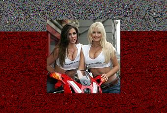 Lucy Pinder et sa copine Michelle Marsh pose à côté d’une moto, soit pour la moto soit… on s’en fout, elle pose.