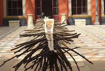 En comptant dans le bois les cercles de croissance, il armorce une remontée vers la source, l’origine. Une histoire de l’art. En effet des milliers d’artistes ont œuvré dans ses lieux, sur les murs des noms d’artistes sont inscrits.